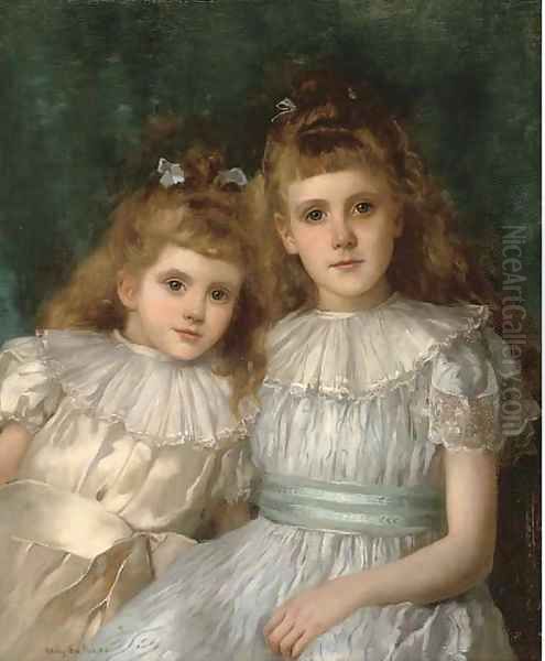 Portrait of sisters, half-length, the elder in a blue dress with white collar, the younger in an oyster coloured dress