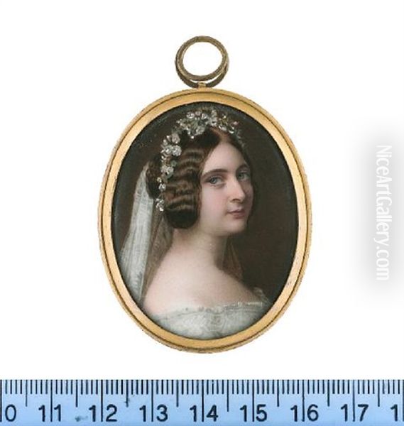 Bring the timeless beauty of John Simpson's Princess Augusta Of Cambridge, Wearing White Wedding Gown, Lace Veil And Floral Wedding Wreath In Her Upswept And Parted Hair into your home with a handmade oil painting reproduction. Carefully recreated on canvas by skilled artists using traditional techniques, this piece captures the delicate brushwork, subtle light, and vibrant color of the original masterpiece. With museum-level quality and rich texture, it brings elegance and artistic depth to any space. Enjoy free shipping and make this masterpiece a part of your personal collection.