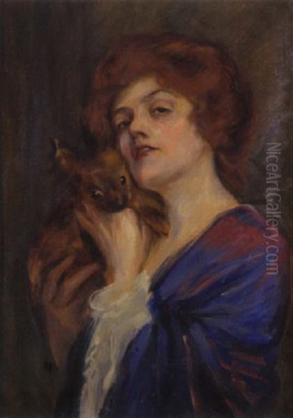 Portrait Einer Rothaarigen Dame Mit Schoshund