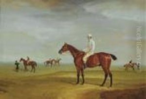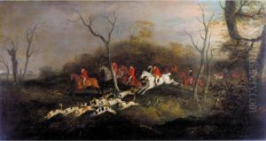 Portrait Of George Marriot On His Bay Hunter Taking A Fence With A Hunt Beyond