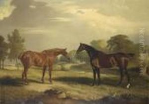 Sambo And Pilot, Property Of Lord Gardner, At Grass, With Figures Beyond