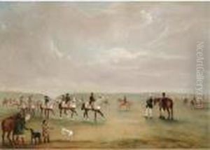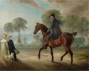 Portrait Of Captain James Ogilvy Fairlie Of Coodham, Full-length, In Hunting Dress, With His Grooms John Jennay And Cooper, And His Hunters