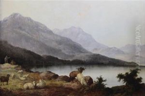 A Shepherd Beside A Camp Fire Watching His Flock By Moonlight