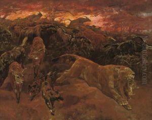 John Trivett Nettleship, born in 1841, was a distinguished British artist, primarily known for his detailed and evocative paintings of lions and other wild animals. His work reflects a deep fascination and respect for the natural world, capturing the majesty and raw beauty of his subjects with a remarkable sense of realism and emotion. Nettleship's talent for depicting the natural world was complemented by his robust understanding of animal anatomy, which he studied meticulously to enhance the authenticity and vitality of his paintings.