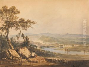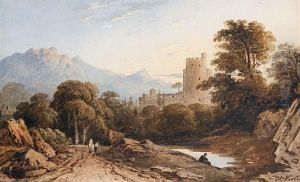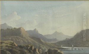 Varleyacross The Village To Themountains A Mountainous Landscapetwo, Watercoloursthe Larger 14.5cmx 20cm