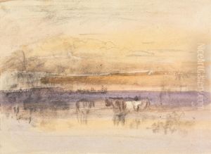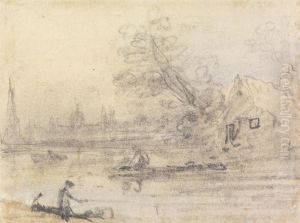 The Bank Of The Thames With Figures In The Foreground And Windsorcastle Beyond