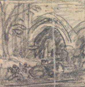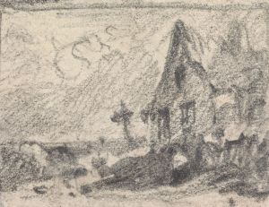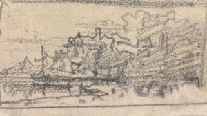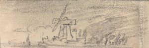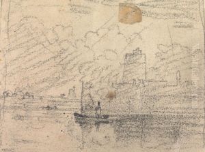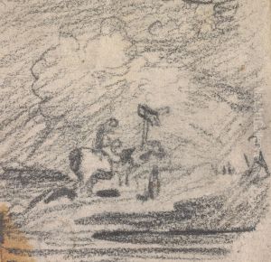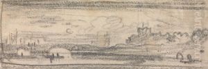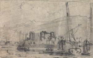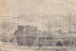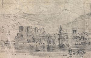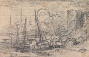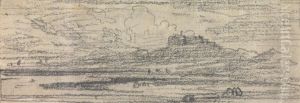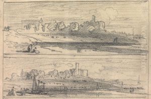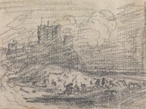 Figures Mending The Nets On The Foreshore Before A Ruinedtower
