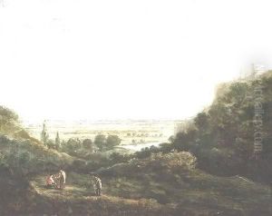 Landscape with Figures and Distant Castle Oil Painting - John Varley