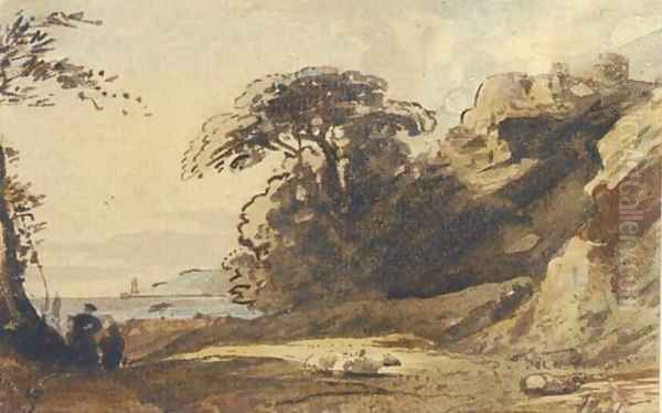 Shepherds before a fortified headland Oil Painting - John Varley