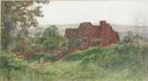Still Life Of Mixed Flowers In An Urn, A Country House Beyond