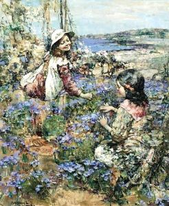 Portraits Of Girls Standing In A Landscape (pair)