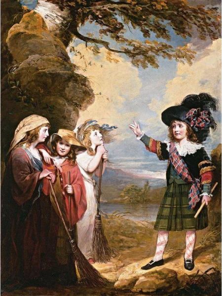 Four Children Playacting As Macbeth And The Three Witches