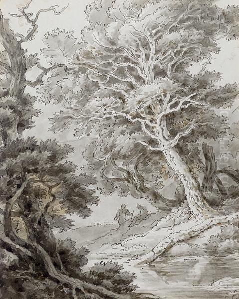 A Figure By A Wooded Stream; Cattle Grazing Kerswell, Devon, A Pair