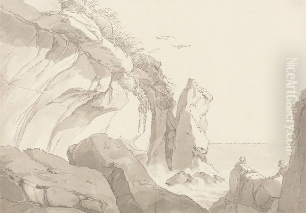 Figures on Rocks at the Sea's Edge