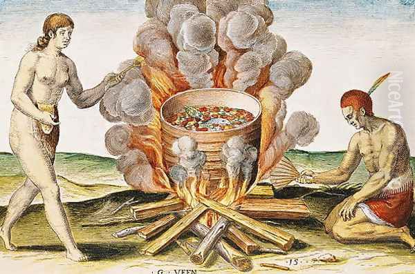 Cooking Food in a Terracotta Pot, from Admiranda Narratio... , engraved by Gysbert van Veen (1562-1628) engraved by Theodore de Bry (1528-98) 1585-88