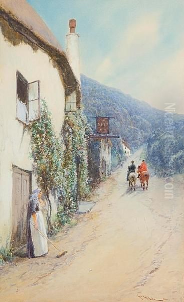Street Scene In North Devon, Thought To Be Lynton Oil Painting by John White