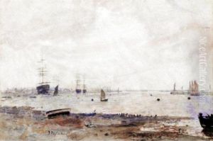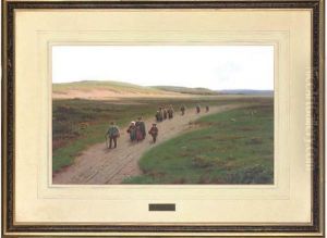 A River Landscape In Summer With A Horse And Cart Crossing A Bridge