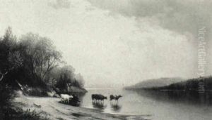 Figures And Cattle At The River's Edge