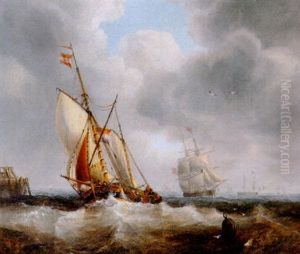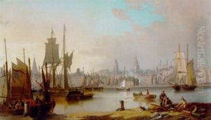 A Barge And A Trading Smack In A Dutch Harbour With Brigs And Other Shipping