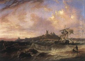 A Royal Navy Frigate Under Reduced Sail Running Past Tynemouth