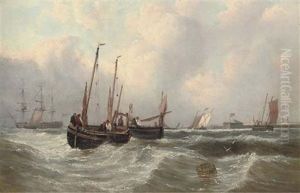A Three-masted Merchantman And Other Traders Caught In A Heavy Swell Off Tynemouth