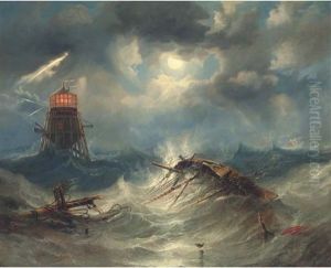 Bamburgh Castle By Moonlight, With Figures And Boats In The Foreground
