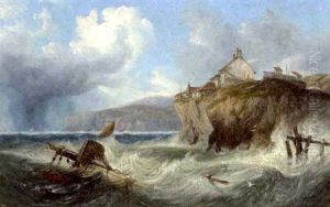 A Royal Navy Frigate Under Reduced Sail Running Past Tynemouth