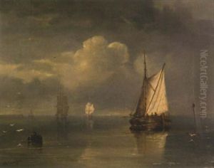Naval Cutters Offshore With A Frigate Coming To Anchor (spithead?)