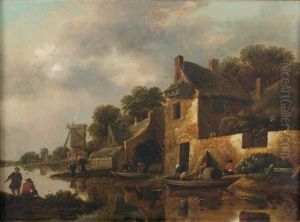 Farmstead With Cart And Figures Before