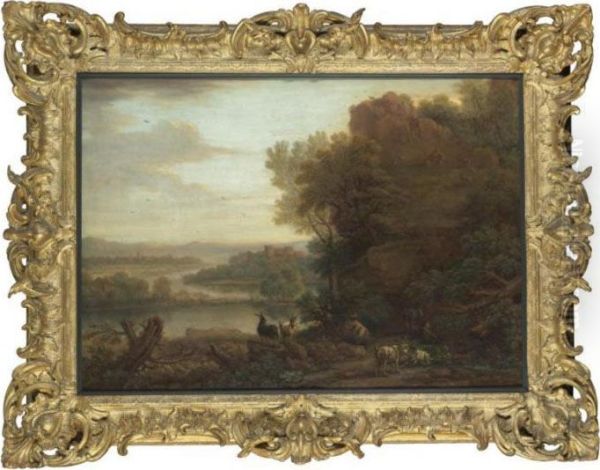 An Arcadian Landscape With Goats A Castle Beyond