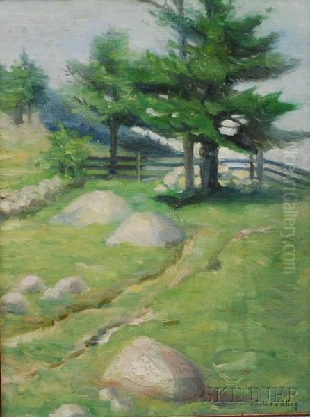 Landscape With Rocky Field And Pine Trees