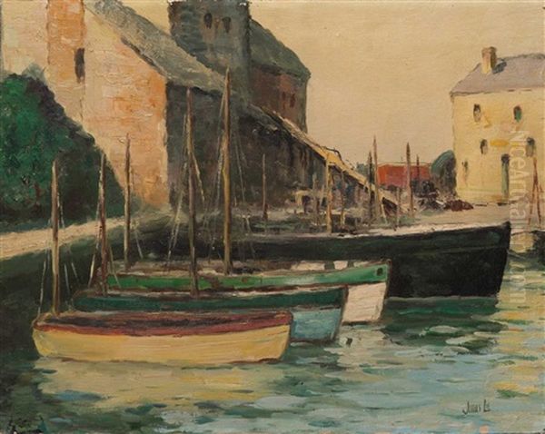 Harbor Scene Oil Painting by Jonas Lie