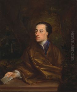 Portrait Of Alexander Pope In A Coat And White Stock Holding A Letter, Landscape Beyond