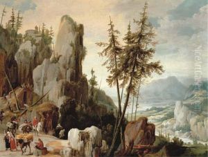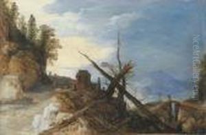 An Alpine Landscape With Travellers And Gypsies On A Path