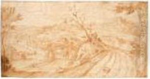 An Extensive Landscape With Saint John The Baptist Preaching