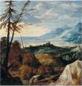 A Mountainous Landscape With Peasants On A Path, A Port Beyond