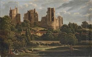 Weite Hugellandschaft Mit Burgbefestigung Und Brucke
