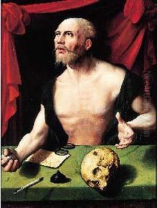 Portrait Of A Young Nobleman, Small Half-length, In A Crimson Doublet, Wearing A Plumed Beret, Holding A Daisy