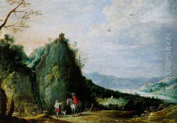 A Traveller Conversing With A Shepherd On A Mountain Path, A River Valley Beyond