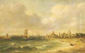 An Italianate Harbour View With Fishermen And Horsemen In The Foreground