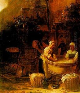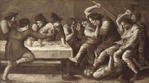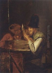 An Interior With A Peasant Woman Sleeping At A Table (+ An Interior With A Peasant Man Holding A Comb; Pair)