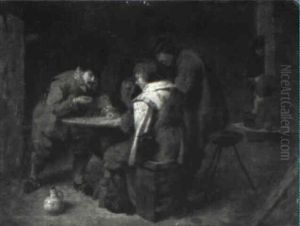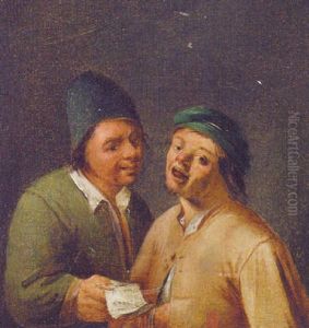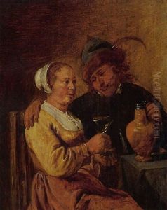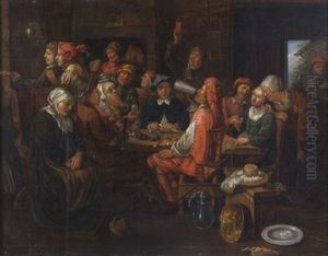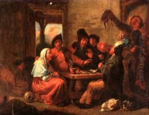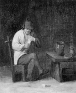 An Interior Of An Inn With A Peasant Smoking A Pipe And A Soldier Drinking, Other Figures Smoking And Drinking In The Background