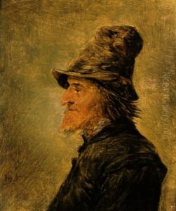 Ein Nach Links Blickender Bauer Mit Einem Hut