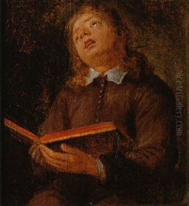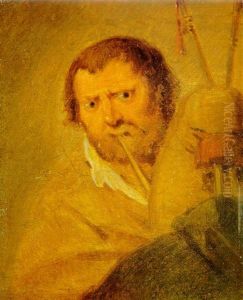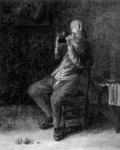 A Tavern Interior With A Boor Making Music With Two Figures Behind