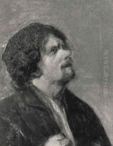 Des 19. Jahrhunderts Bildnis Eines Bartigen Mannes Mit Spitzem Hut