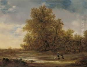 A River Landscape with Fishermen Hauling in Nets