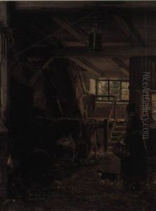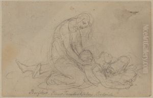Ung Italiensk Kvinde Med Tamburin, I Baggrunden Legende Born