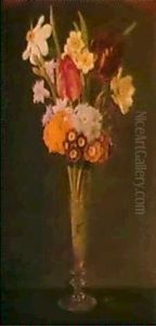 Buket Af Paeoner, Valmuer, Tulipaner, Lojtnantshjerter Og Syrener