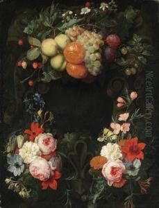 Stone Cartouche with Fruit and Flower Garland