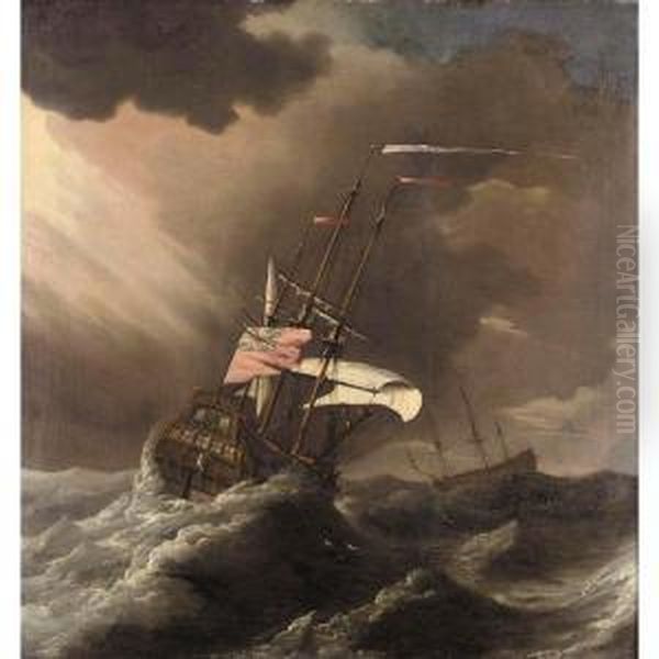 A british Man-o-war In Heavy Seas